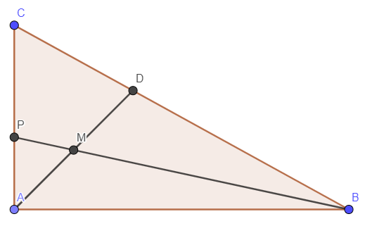 (AIME 2011) In triangle $ABC, AB=\dfrac{20}{11}AC.$ The angle bisector of $\angle A$ intersects $BC$ at point $D$, and point $M$ is the midpoint of $AD$. Let $P$ be the point of intersection of $AC$ and $BM$. Find $\dfrac{CP}{PA}$.