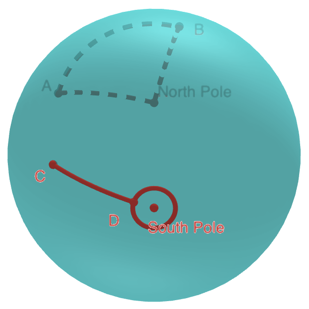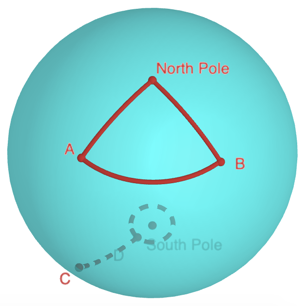 Please note that point $C$ could be anywhere on a circle around the earth axle, with an infinite number of locations. Could you tell if there are additional circles for $C$?