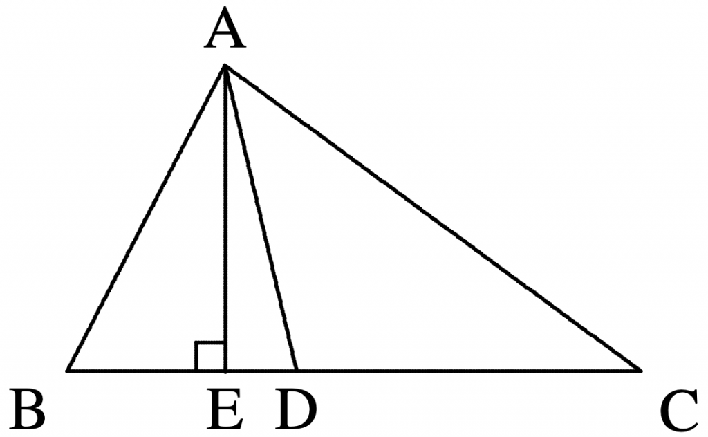 - As shown in the diagram below, in $\triangle{ABC}$, $\angle{B}\gt \angle{C}$, $AD$ is the bisector of the $\angle{BAC}$, $AE\perp BC$ at $E$. Prove that $\angle{DAE}=\dfrac{1}{2}(\angle{B}−\angle{C})$.