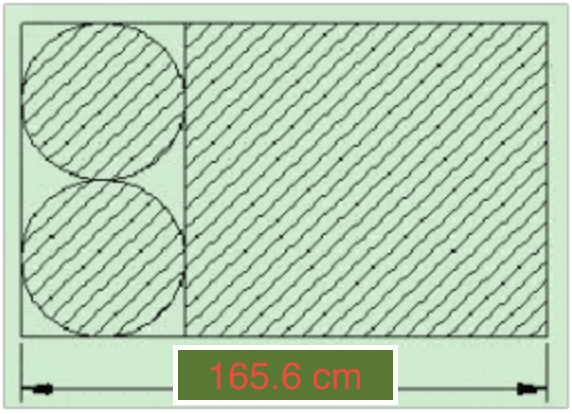________ A rectangle metal sheet is cut into two circles and one smaller rectangle, as shown in shared regions, to form a cylinder-shaped oil container. Find the volume of the oil container in liters. Assume $\pi=3.14$, and round your answer to the nearest integer.