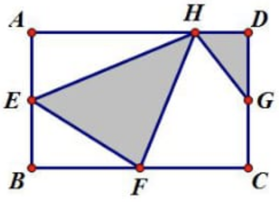 ________ The area of rectangle $ABCD$ is $36\ cm^2$. $E$, $F$, and $G$ are midpoint of $AB$, $BC$, and $CD$ respectively. $H$ is on $AD$. Find the area of the shaded region in $cm^2$.