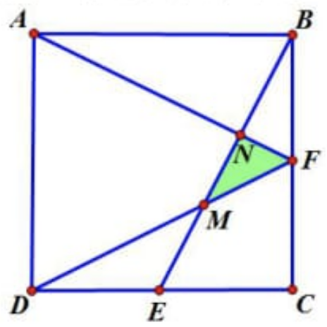 ________ The area of square $ABCD$ is $900\ cm^2$. $E$ is the midpoint of $CD$. $F$ is the midpoint of $BC$. $BE$ intersects with $DF$ at $M$, with $AF$ at $N$. Find the area of $\triangle{MNF}$ in $cm^2$.