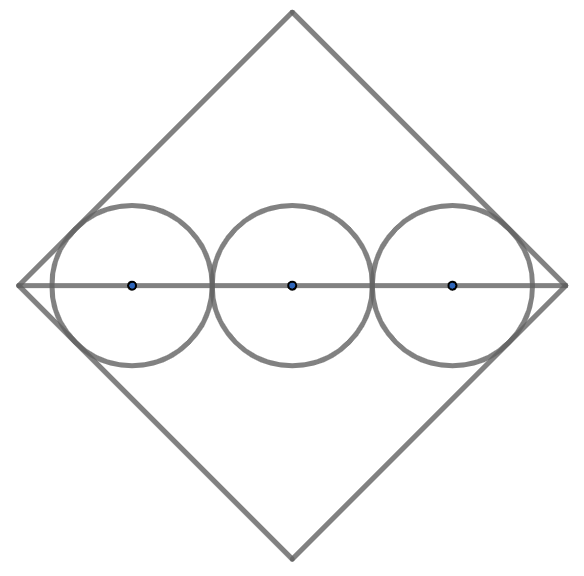 22. Three congruent circles have their centers on the same diagonal of a square, with two of the circles each tangent to two sides of the square, and the third circle externally tangent to the other two circles, all as shown. If the length of a side of the square is $8$, what is the length of a radius of the one of the circles?