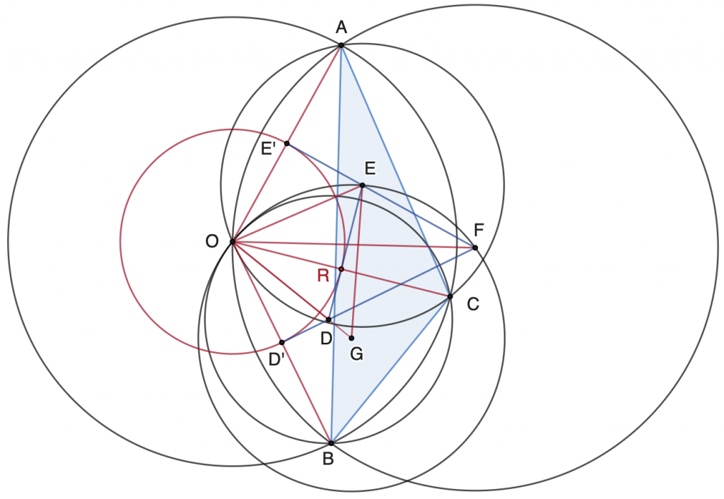 Let $O$ be the circumcenter of $\triangle{ABC}$, and $O$ does not lies on $AB$, $BC$ or $CA$. Let $D$, $E$, and $F$ be circumcenters of $\triangle{OBC}$, $\triangle{OCA}$, and $\triangle{OAB}$, respectively. Let $G$ be the the circumcenter of $\triangle{OEF}$. Prove that $D$, $O$, and $G$ are collinear.🔑